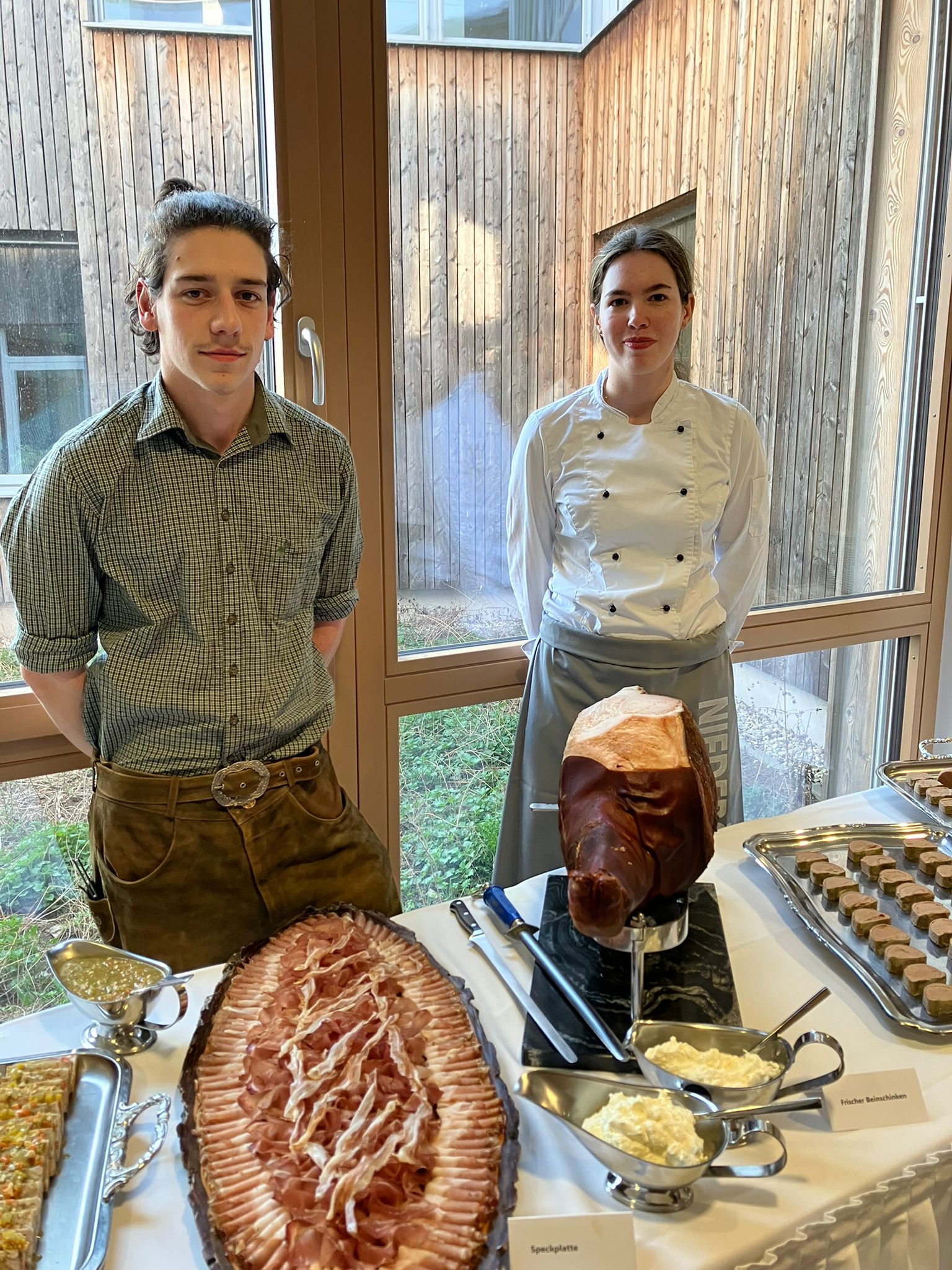 Darüber hinaus war die 4. Klasse der Gastronomiefachlehrlinge der Landesberufsschule Geras mit den Fachlehrern Messmann, Waschnig-Theuermann und Rosenberger vor Ort, um die Veranstaltung kulinarisch zu umrahmen und den Gästen ein abwechslungsreiches Buffet zu bieten. Die lehrberufsübergreifende Zusammenarbeit zwischen den Schulen funktionierte dabei wie immer hervorragend und trug wesentlich zur gelungenen Gesamtatmosphäre bei.